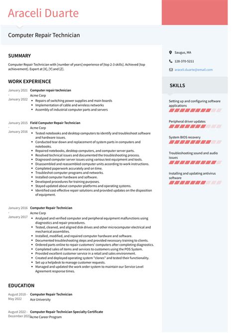 Download computer repair technician resume sample Doc